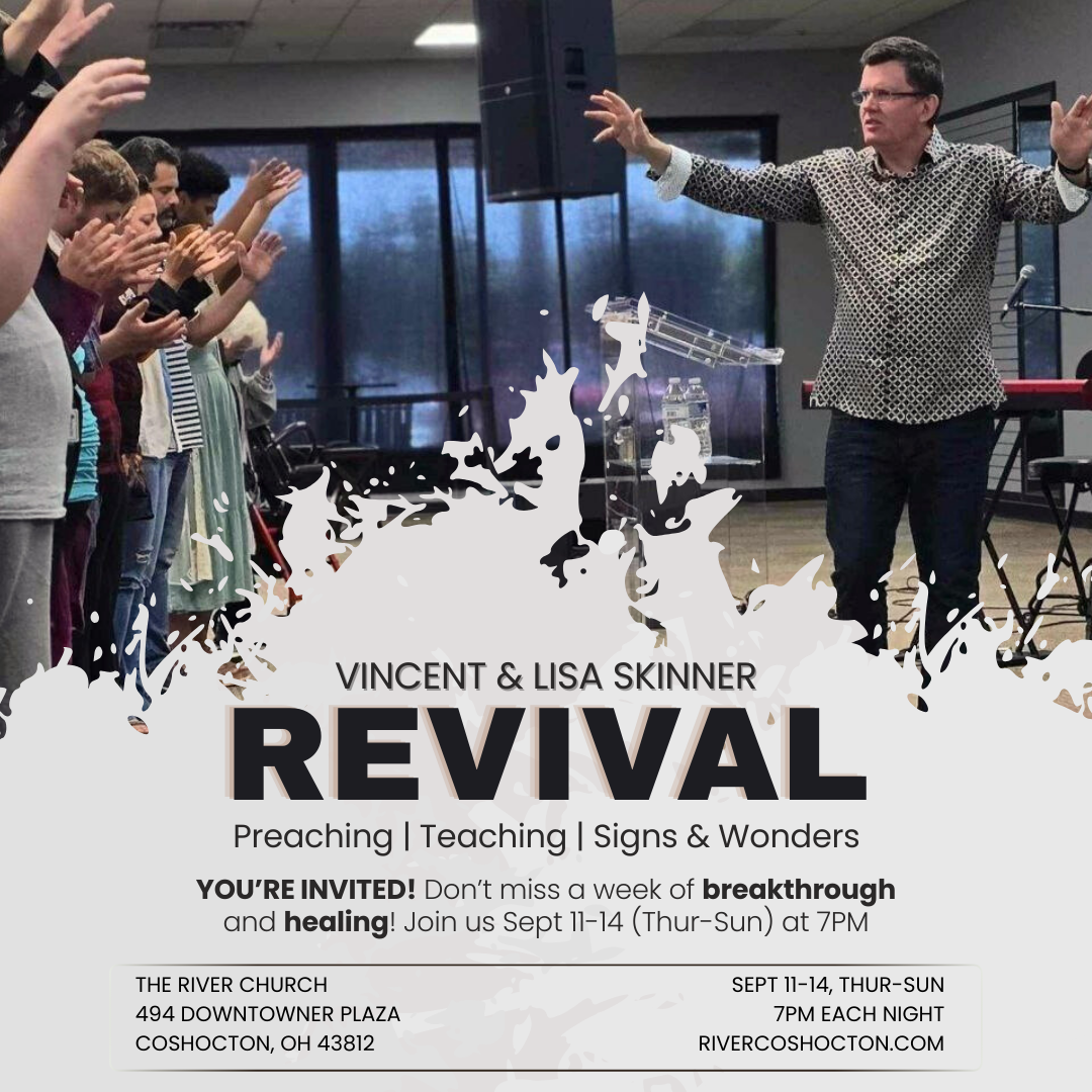 Get ready, Coshocton! Vincent & Lisa Skinner have preached the Gospel across 40+ nations and kindled revival-fire worldwide and are coming to The River Church for four unforgettable evenings of revival. Their ministry has ignited spiritual hunger for Jesus and life transformation globally