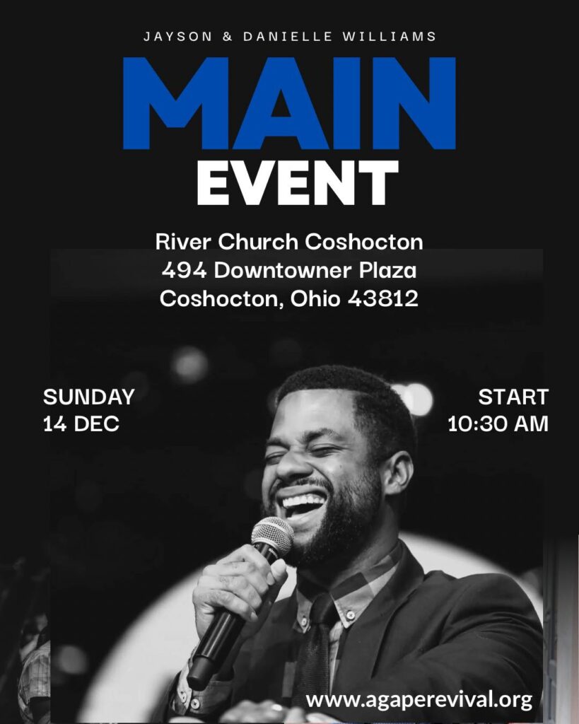 Join us for The Main Event Service at The River Coshocton Church with special guests Pastors Jayson & Danielle Williams from Columbus, Ohio!